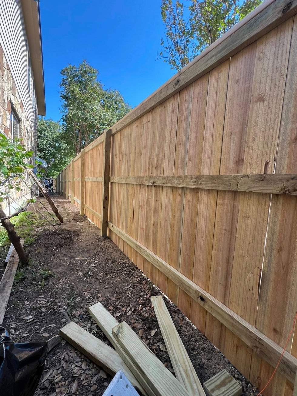 This project showcases the process of building a wooden fence in various backyard settings. From the initial construction to the final result, these images capture the craftsmanship and attention to detail involved in creating a beautiful wooden fence.